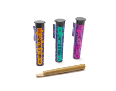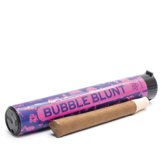 Bubble Blunt Hybrid [1.1g] will entertain a party of vacationers or blitz the most discerning of solo tokers. We start with strain specific flower rich in terpenes and bubble hash blended at a 5:1 ratio. The blend is then loaded into hemp blunt cones with wooden tips and hand-inspected for consistency, ensuring a smooth and potent toke.